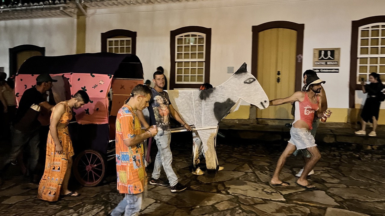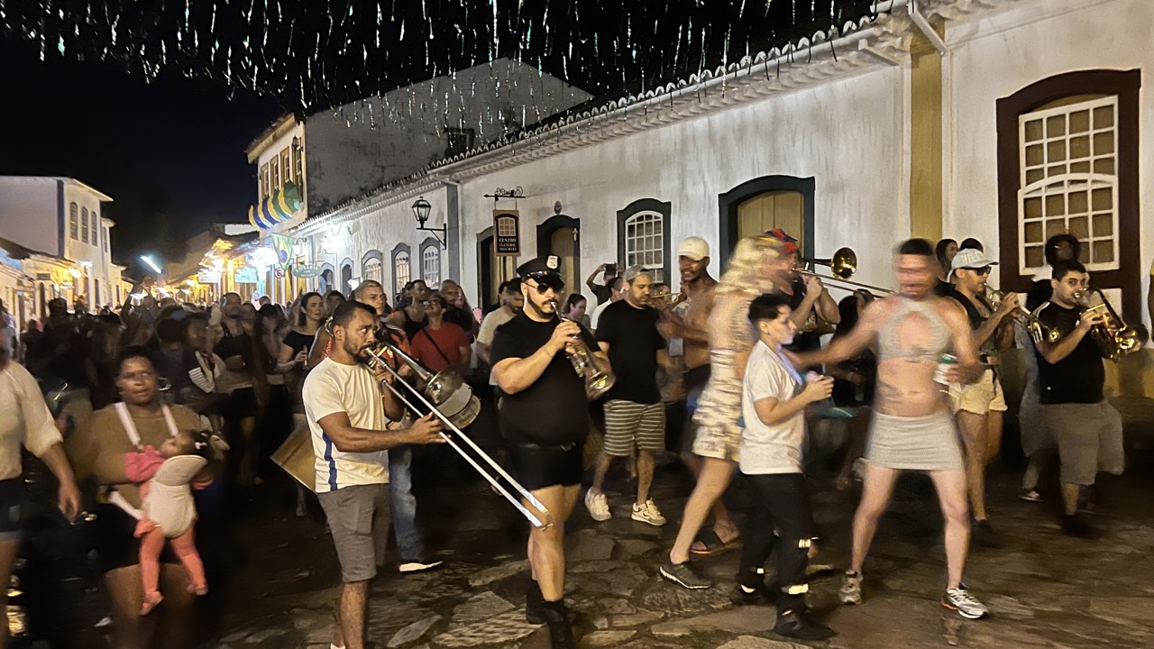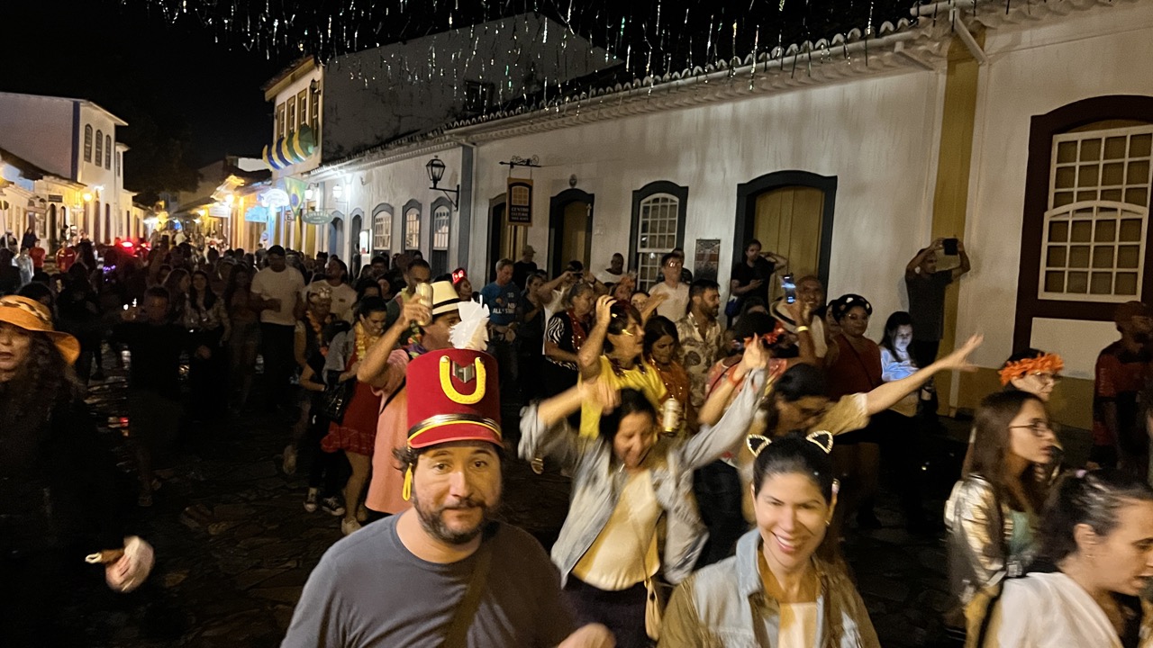 Nas ruas históricas da cidade dois blocos desfilaram nesta noite de sexta-feira. O Charreteiros saiu do Bairro Cuiabá em direção a matriz de Santo Antônio onde se encontrou com o bloco Domésticas que estava concentrado ali para também percorrer as ruas da cidade até o Largo das Forras. Uma multidão tomou conta daquele espaço em frente à Matriz e prestigiou as duas agremiações que entregaram tudo para os foliões. Marchinha e samba raiz são os ritmos escolhidos e carregam toda a tradição do carnaval. Além disso o que não faltou foi gente com fantasias tradicionais e outras criativas.