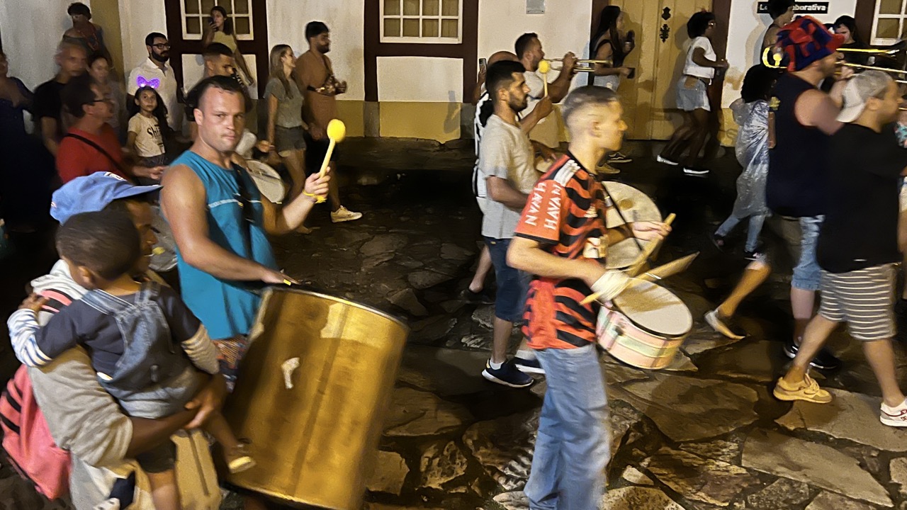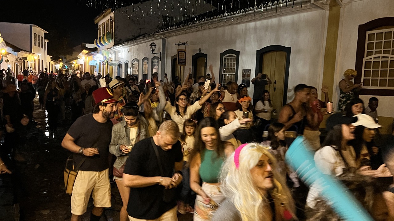 Nas ruas históricas da cidade dois blocos desfilaram nesta noite de sexta-feira. O Charreteiros saiu do Bairro Cuiabá em direção a matriz de Santo Antônio onde se encontrou com o bloco Domésticas que estava concentrado ali para também percorrer as ruas da cidade até o Largo das Forras. Uma multidão tomou conta daquele espaço em frente à Matriz e prestigiou as duas agremiações que entregaram tudo para os foliões. Marchinha e samba raiz são os ritmos escolhidos e carregam toda a tradição do carnaval. Além disso o que não faltou foi gente com fantasias tradicionais e outras criativas.