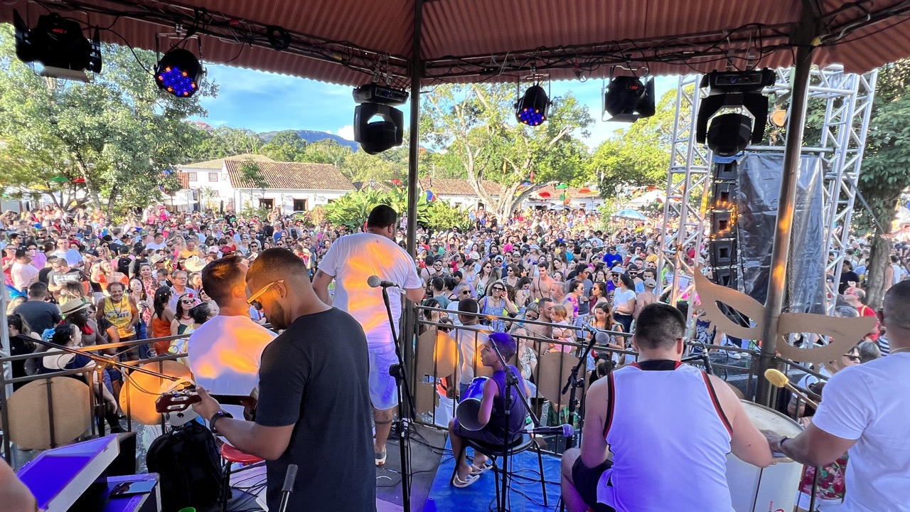 Para começar o dia, o Largo das Forras foi palco do show do grupo de Chorinho e de Samba “Quinto Dia Útil”, organizado pela flautista Salomé Viegas e com a voz de Isis Ferreira (foto acima). Com a praça lotada, todo mundo cantou e dançou muito até o último acorde, deixando o público com aquela sensação de que a apresentação poderia ter sido maior. Logo depois de uma curta pausa para o acerto do som a galera só fez continuar no clima carnavalesco. Isto porque o grupo tiradentino Uai Samba tocou até o final da tarde os sucessos mais atuais deste ritmo contagiante. O sol – que finalmente apareceu por inteiro – ajudou a completar o cenário de uma típica tarde de carnaval.