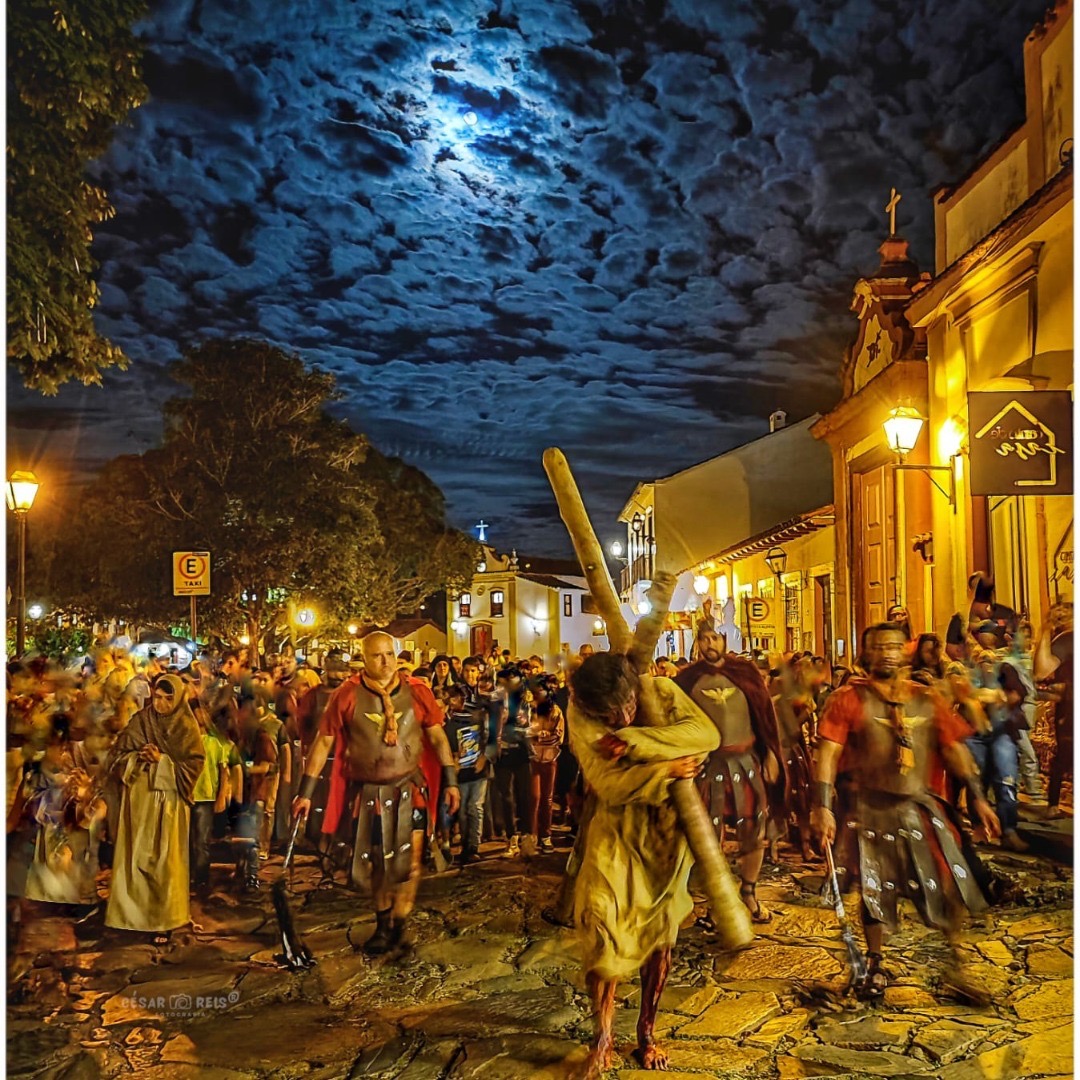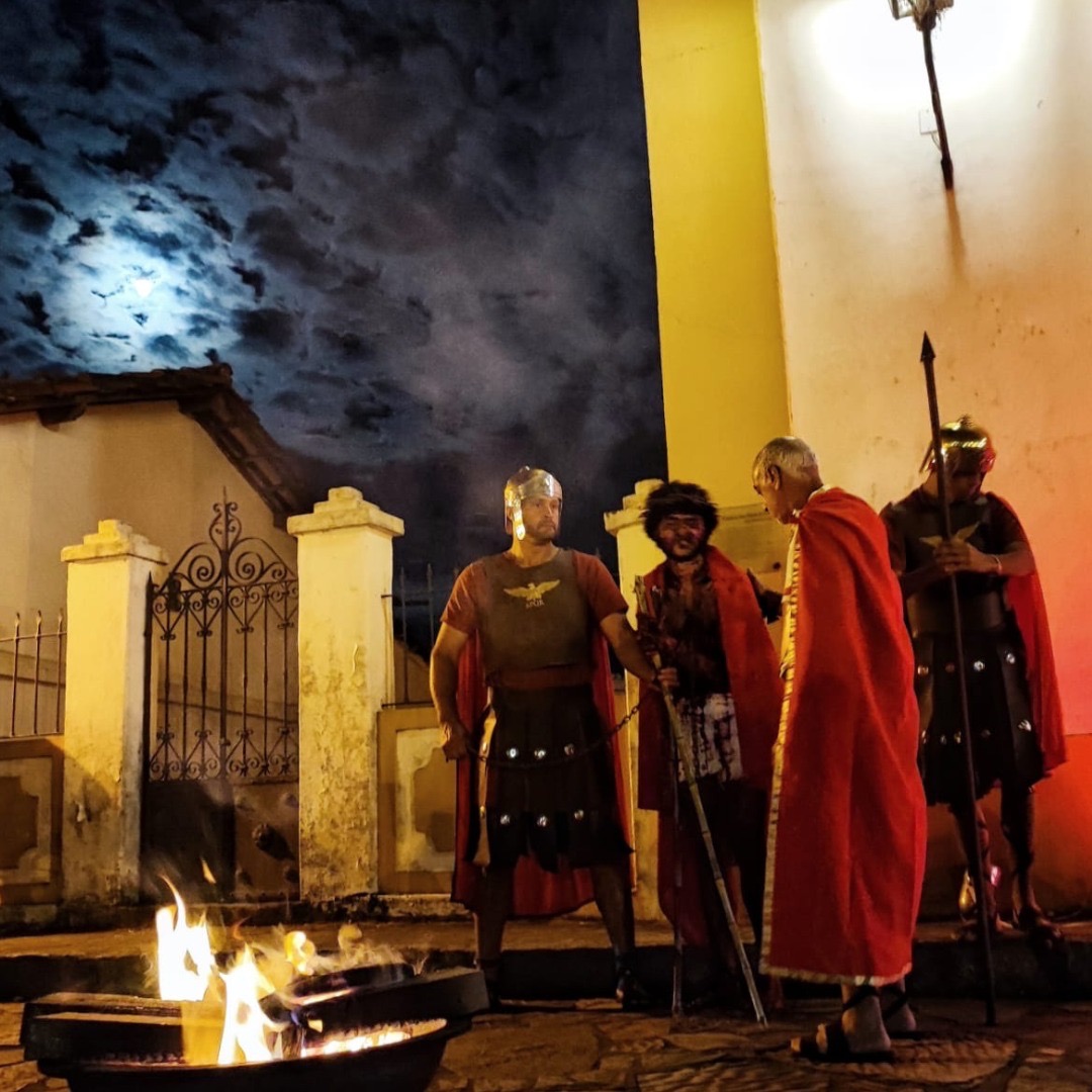 Em Tiradentes, a encenação da Via Sacra é uma dos momentos mais emocionantes e envolvente da Semana Santa. E a noite desta quarta-feira, 5 de abril, não foi diferente logo quando a procissão teve início na Capela Senhor Bom Jesus da Pobreza, e percorreu o Centro Histórico até chegar à Igreja Nossa Senhora do Rosário, locais de grande simbolismo religioso para a cidade.