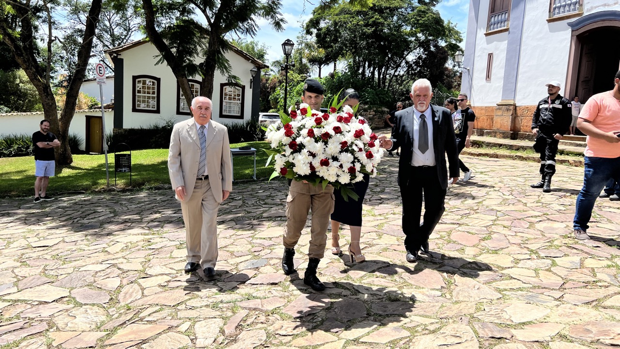 Ainda durante a solenidade autoridades colocaram uma corbeille de flores na estátua de Tiradentes, mártir da Inconfidência Mineira. Além da execução do Hino do Município de Tiradentes pela Banda Ramalho, o prefeito Nilzio Barbosa fez um breve pronunciamento onde, logo no início, destacou os dois adjetivos utilizados pelo então médico e capelão, Reverendo Robert, ao conhecer Tiradentes, em 1828: “Singular e romântica”, que podem também descrever algumas de suas qualidades. E completou: “Olhar para Tiradentes, considerar o seu presente, planejar o seu futuro sem debruçar sobre as marcas do passado é fechar os olhos para o que permanece oculto em nossas vidas.” E finalizou lembrando que o povo tiradentino sente prazer pela vida no interior, pelo gosto da culinária caipira e de seu linguajar.
