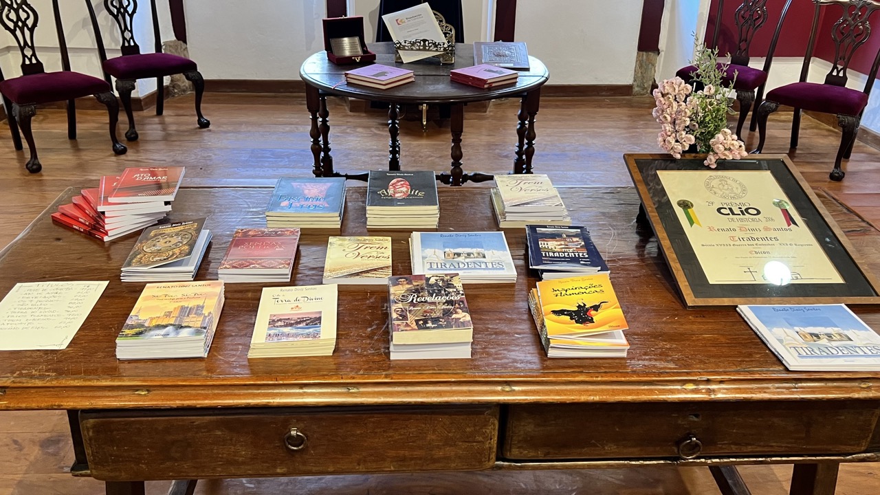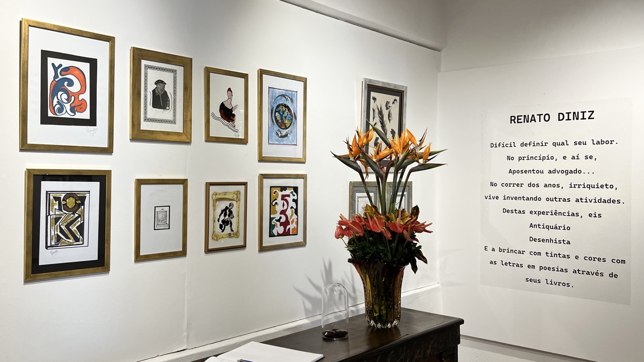 O advogado e procurador federal aposentado, Renato Diniz, também residente em Tiradentes-MG, revela nesta exposição seu espírito irriquieto e suas múltiplas aptidões. Há quadros pintados durante a pandemia do novo coronavírus, seus livros lançados ao longo de sua extensa carreira e memórias de uma vida transitada entre a profissão e a arte que sempre pulsou de forma singular em seu coração.