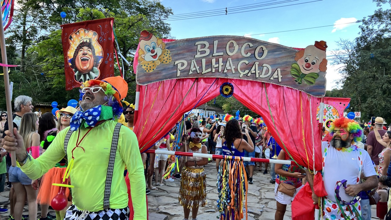 A prova desta animação toda foi o número gigantesco de pessoas que saiu no Bloco Palhaçada, no meio da tarde desta segunda-feira. Repleto de crianças e privilegiando a diversão da família, esta agremiação tradicional em Tiradentes fez sua concentração no Largo das Mercês e de lá saiu arrastando milhares de foliões pelo Centro Histórico. Até o prefeito Nilzio Barbosa Pinto (foto) vestiu a fantasia de palhaço e, megafone nas mãos, se destacou fazendo brincadeiras e fotografias com outros foliões. O Bloco também trouxe duas baterias, inédito até então este ano, e muita gente fantasiada, especialmente as crianças, já que ele tem essa característica de atrair o público infantil.