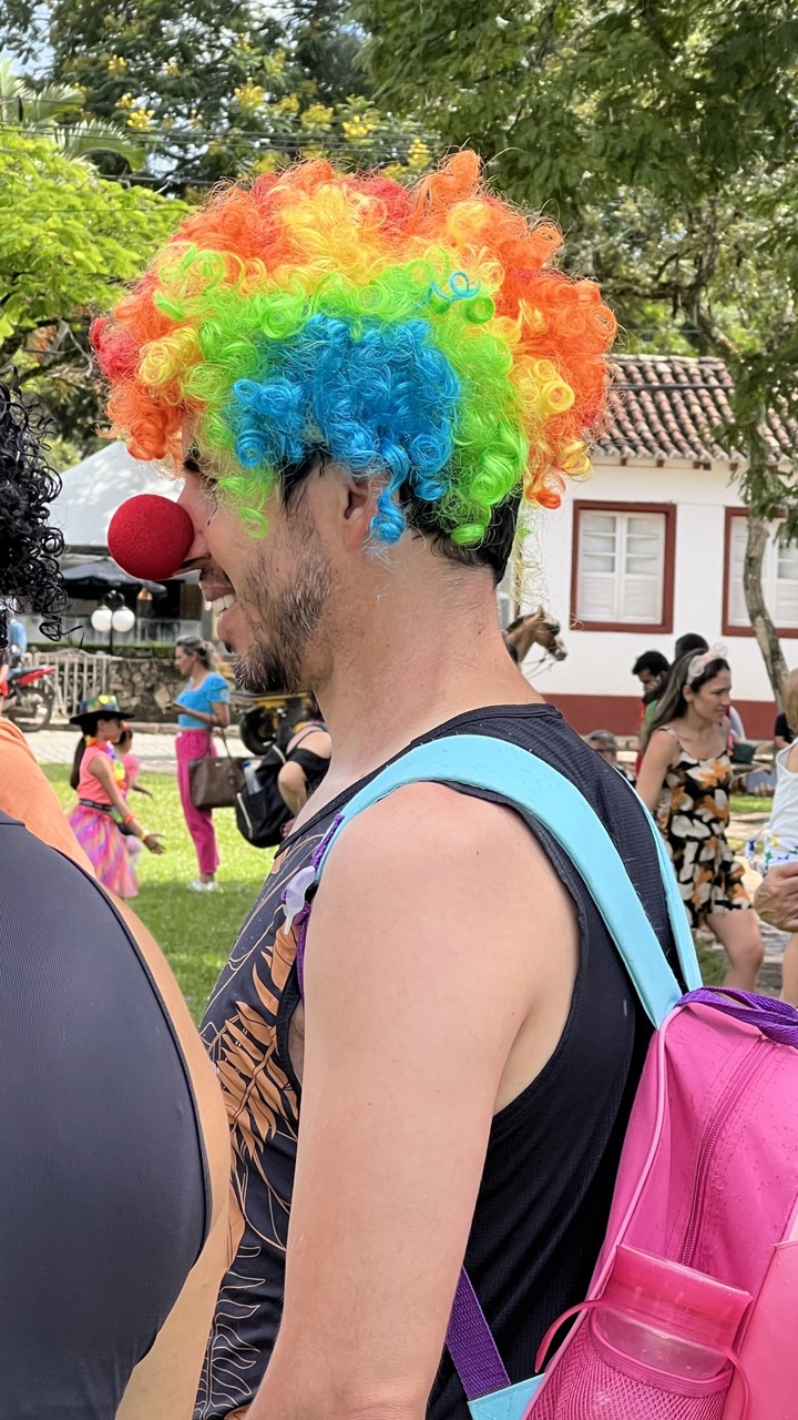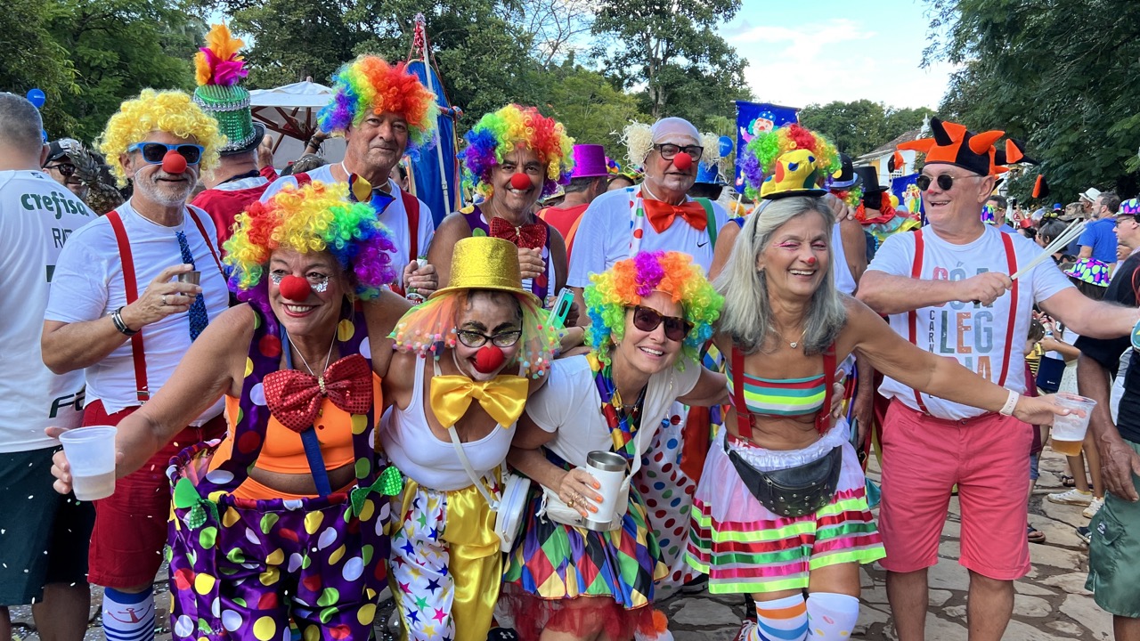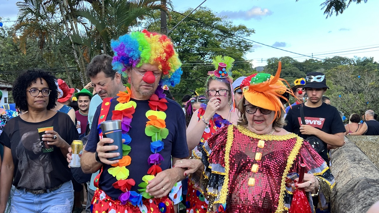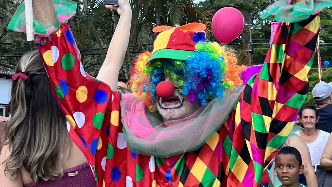 A prova desta animação toda foi o número gigantesco de pessoas que saiu no Bloco Palhaçada, no meio da tarde desta segunda-feira. Repleto de crianças e privilegiando a diversão da família, esta agremiação tradicional em Tiradentes fez sua concentração no Largo das Mercês e de lá saiu arrastando milhares de foliões pelo Centro Histórico. Até o prefeito Nilzio Barbosa Pinto (foto) vestiu a fantasia de palhaço e, megafone nas mãos, se destacou fazendo brincadeiras e fotografias com outros foliões. O Bloco também trouxe duas baterias, inédito até então este ano, e muita gente fantasiada, especialmente as crianças, já que ele tem essa característica de atrair o público infantil.