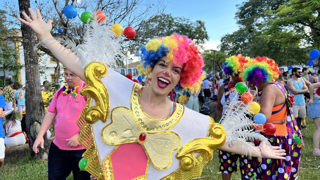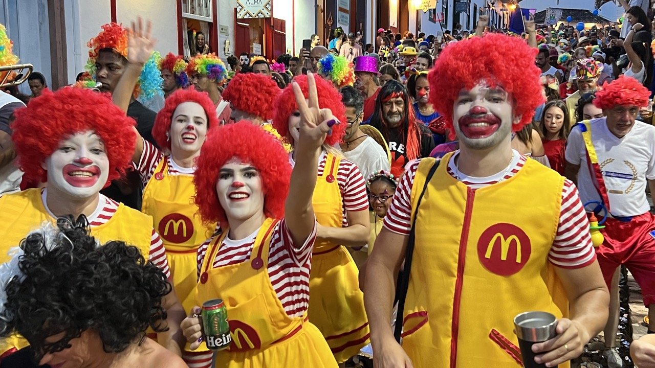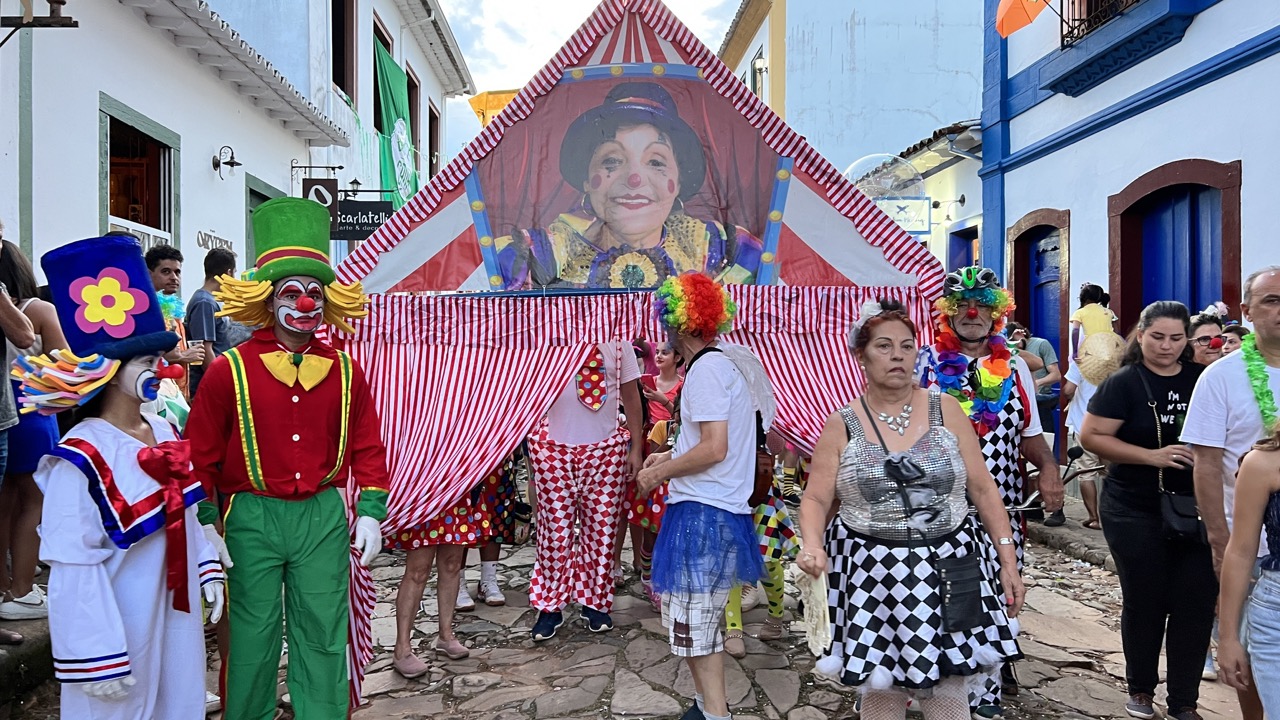 A prova desta animação toda foi o número gigantesco de pessoas que saiu no Bloco Palhaçada, no meio da tarde desta segunda-feira. Repleto de crianças e privilegiando a diversão da família, esta agremiação tradicional em Tiradentes fez sua concentração no Largo das Mercês e de lá saiu arrastando milhares de foliões pelo Centro Histórico. Até o prefeito Nilzio Barbosa Pinto (foto) vestiu a fantasia de palhaço e, megafone nas mãos, se destacou fazendo brincadeiras e fotografias com outros foliões. O Bloco também trouxe duas baterias, inédito até então este ano, e muita gente fantasiada, especialmente as crianças, já que ele tem essa característica de atrair o público infantil.