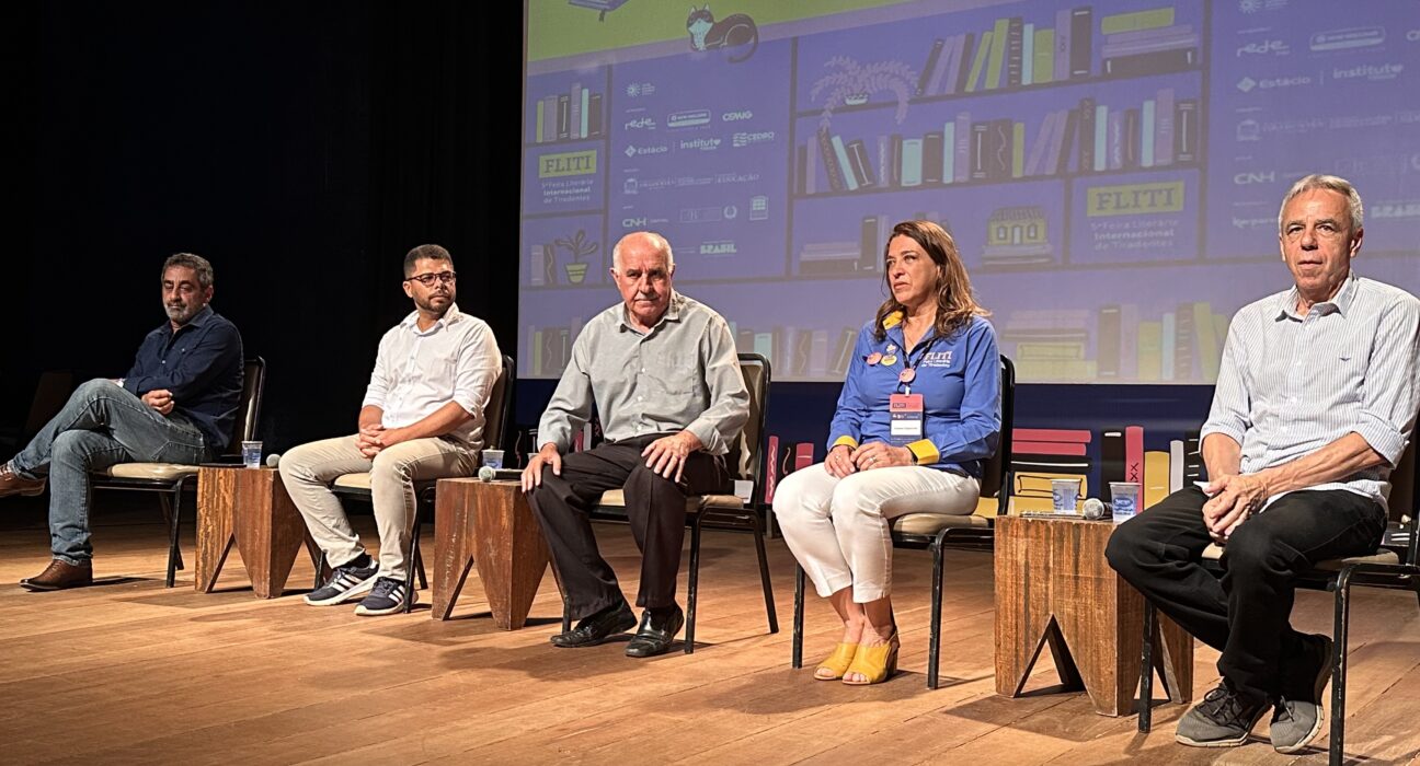 Foi aberta oficialmente às 10h desta quinta-feira, 7 de novembro, a 5ª FLITI – Feira Literária Internacional de Tiradentes – em solenidade no Centro Cultural Yves Alves. Estiveram presentes o prefeito Nilzio Barbosa, os secretários de Turismo, Cultura, Esportes e Lazer de Tiradentes, Sérvulo Matias Filho e Ralph Justino, respectivamente, além do secretário de governo, Rogério de Almeida e a coordenadora da FLITI, Cristina Figueiredo. Uma plateia formada por crianças, estudantes da rede municipal de ensino, marcou o evento.