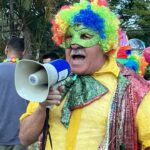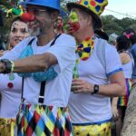 A prova desta animação toda foi o número gigantesco de pessoas que saiu no Bloco Palhaçada, no meio da tarde desta segunda-feira. Repleto de crianças e privilegiando a diversão da família, esta agremiação tradicional em Tiradentes fez sua concentração no Largo das Mercês e de lá saiu arrastando milhares de foliões pelo Centro Histórico. Até o prefeito Nilzio Barbosa Pinto (foto) vestiu a fantasia de palhaço e, megafone nas mãos, se destacou fazendo brincadeiras e fotografias com outros foliões. O Bloco também trouxe duas baterias, inédito até então este ano, e muita gente fantasiada, especialmente as crianças, já que ele tem essa característica de atrair o público infantil.